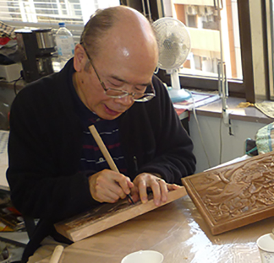 鎌倉彫を始められた方々も木地の調達から彫り・塗りと十数年をかけて、すべてを習得して、作品を制作される方も多いのです。